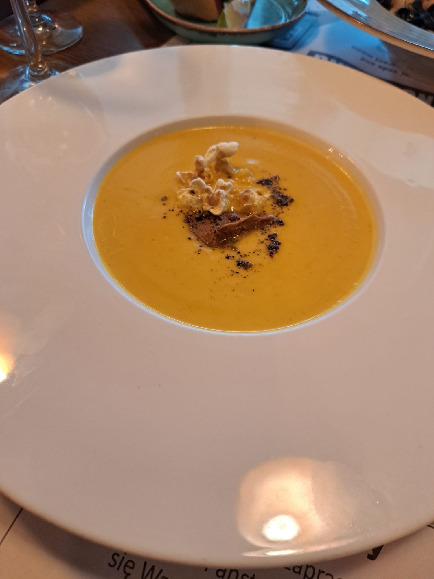 Zupa krem z kiszonej kapusty z pureeziamniaczanym z chrzanem i pieczonym żeberkiem z kwaśną śmietaną